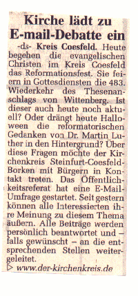 Artikel Westfälischen-Nachrichten am 31.10.2000